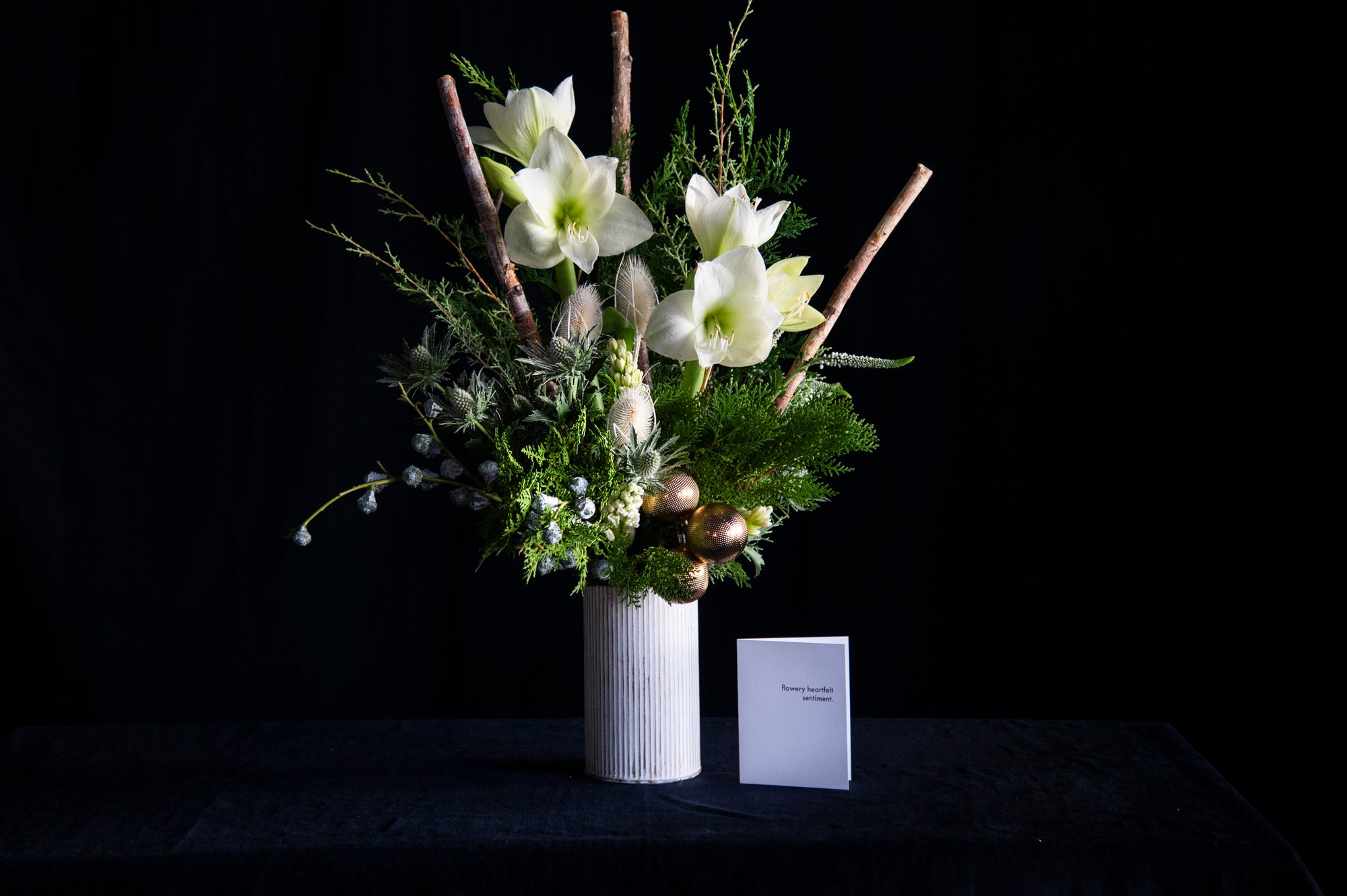 Our exclusive Winter Collection is full of one-of-a-kind floral arrangements inspired by an Enchanted Winter Wonderland. Woodsy blooms, forest elements, premium stems, pods, winter greens, crisp whites, and a few surprises (candlelight) make this collection truly befitting of this time of year. We truly hope you find the magic in the season and enjoy unique designs.